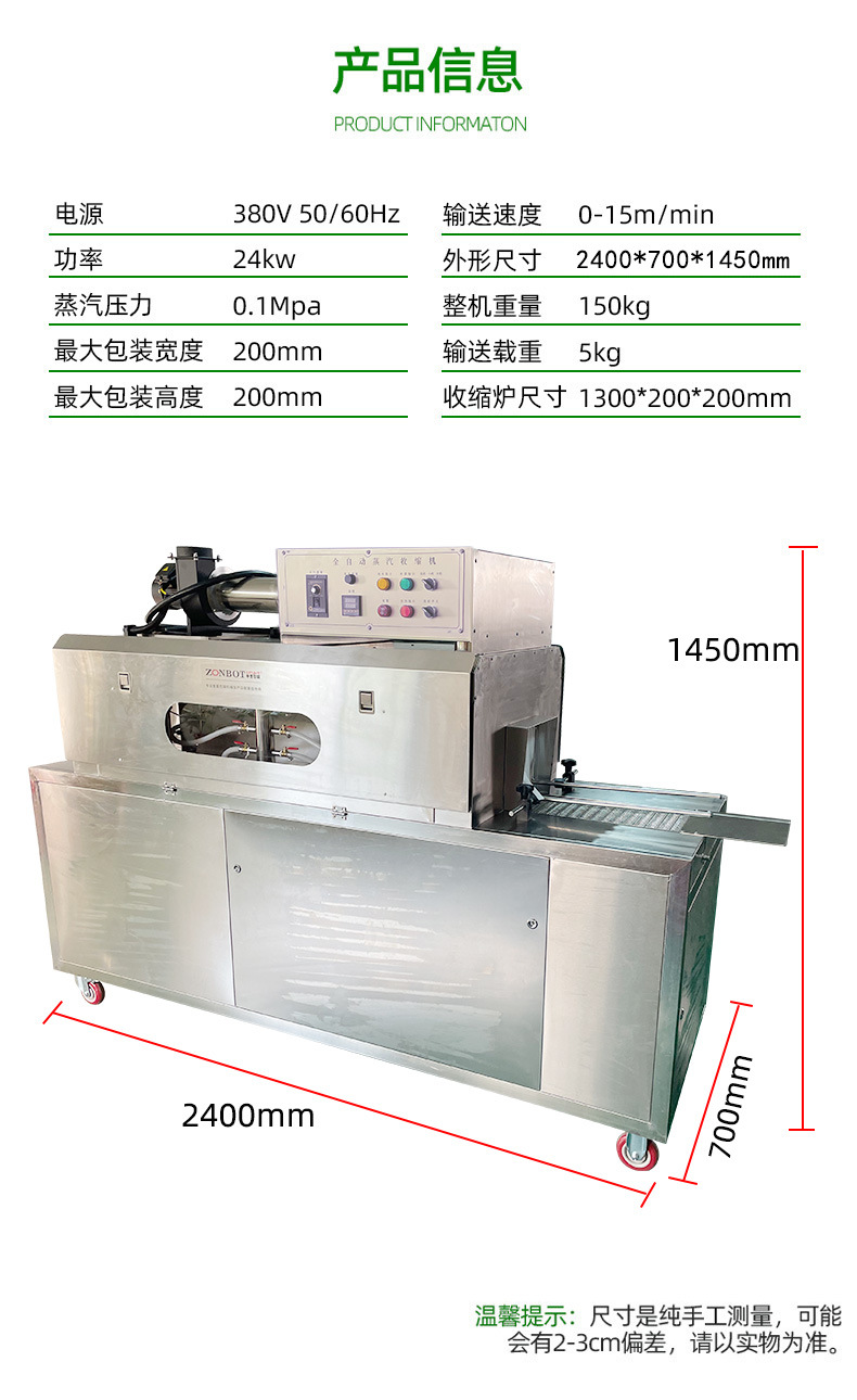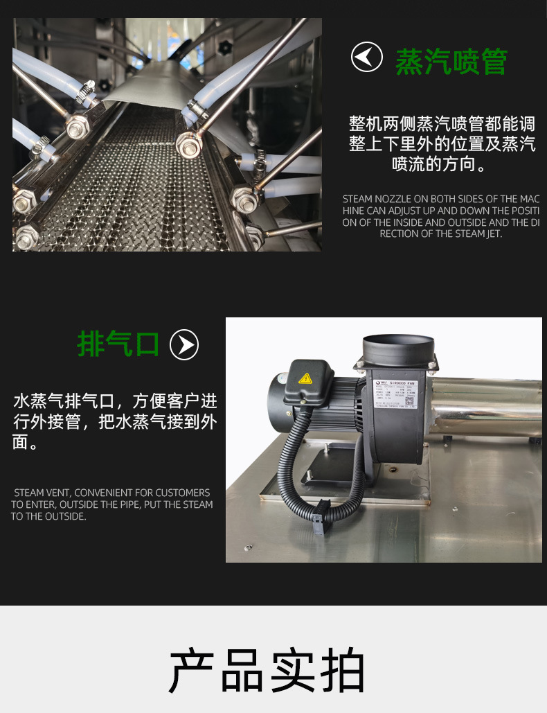 - 高效封装:利用蒸汽的热传导性快速软化膜材,收缩时间较传统电加热缩短 30%~50%;