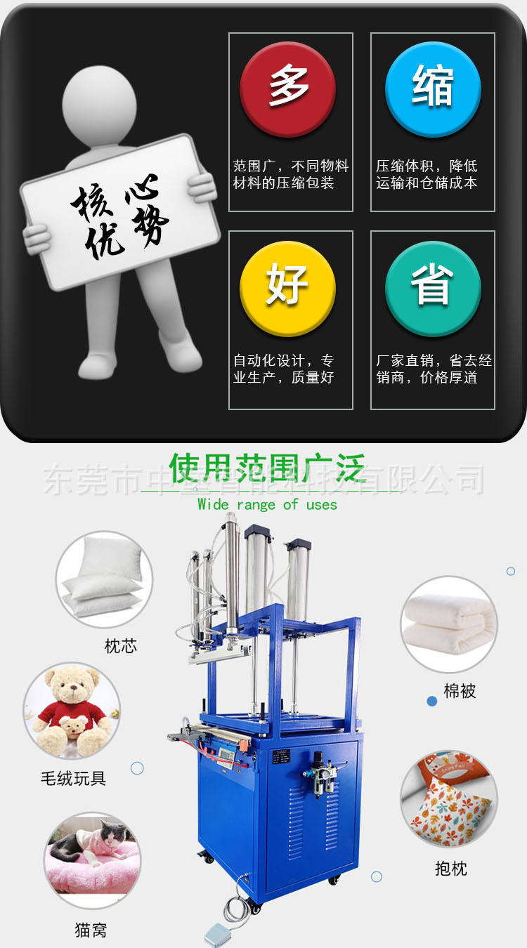 - 压缩阶段:通过真空负压、机械挤压或热收缩等方式,减少物品内部空隙(如抽取空气、挤压蓬松物、利用膜收缩力),实现体积缩减。