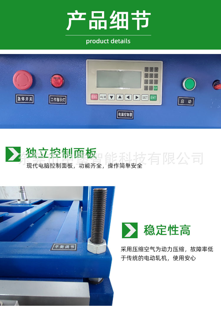 压缩封口机的核心是 “先压缩,后封口” 的联动流程: