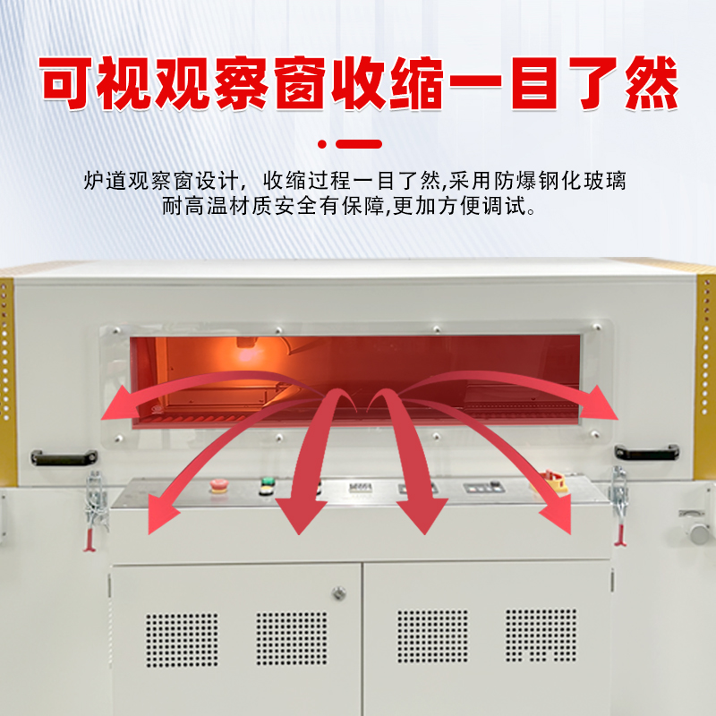 - 可视窗设计:设备设有可视窗,能够让操作人员清晰地观察到收缩过程,便于及时发现和调整包装过程中出现的问题,确保包装质量。