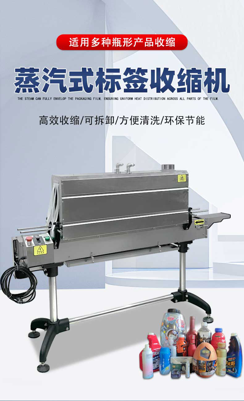 蒸汽收缩机通过将水加热产生蒸汽,蒸汽在一定压力下喷射到覆盖在被包装物品上的收缩膜上。收缩膜受热后迅速收缩,紧紧包裹住物品,达到固定、保护物品以及美化包装的目的。