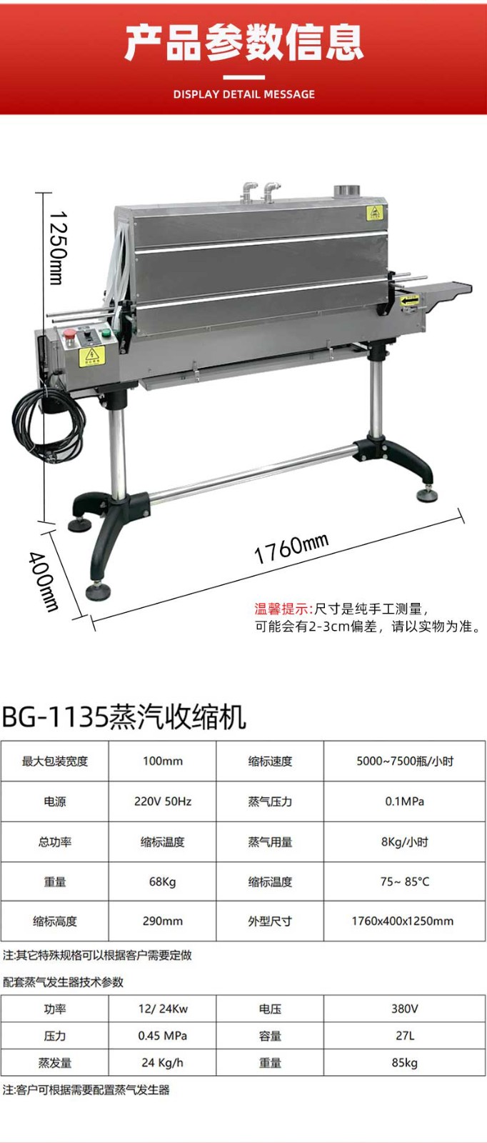 - 高效收缩:能快速产生大量蒸汽,使包装膜迅速收缩贴合产品,可提高生产效率。